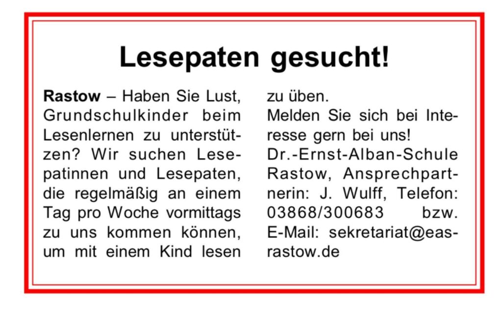 Lesepaten gesucht!