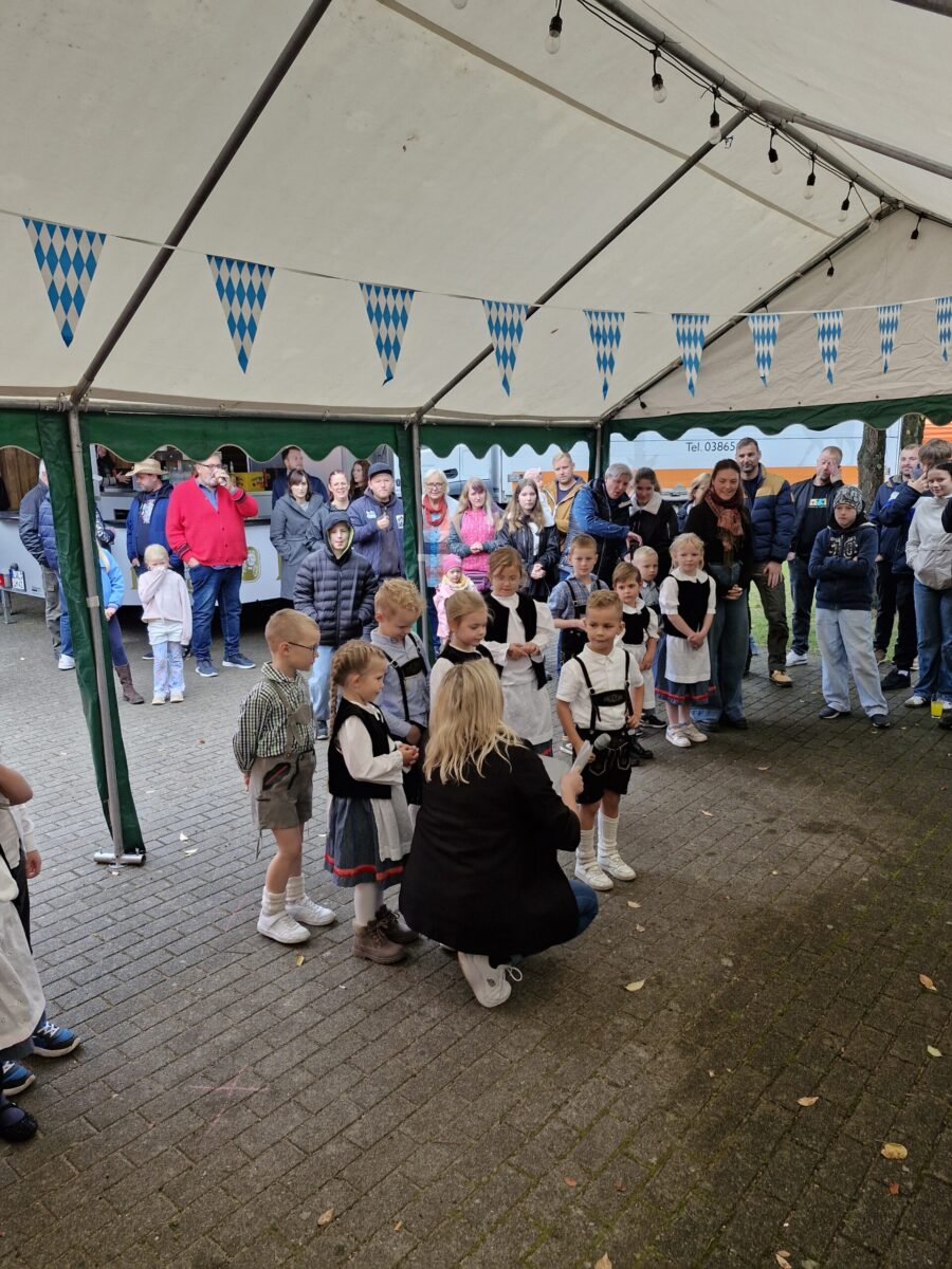 Der Kraaker Kultur- & Heimatverein hatte am 4. Oktober 2025 zum alljährlichen Oktoberfest seine Besucher eingeladen. Und pünktlich am frühen Morgen machte Petrus seine Pforten auf und es regnete wie aus Eimern. Doch wir ließen uns nicht entmutigen und auch Petrus zeigte Gnade und somit eröffnete unsere Vereinsvorsitzende Christina Ahrens um 15.30 Uhr das diesjährige Oktoberfest. Bei selbstgebackenen Kuchen, Torten unserer Kraaker Kuchenbäckerinnen und frischem heißen Kaffee schauten die Besucher das Programm der Vorschulgruppe von Doreen Oling aus der Kita „Lütte Swölken“ in Rastow. So untermalte zum Beispiel ein plattdeutsches Gedicht oder das Lied „Ich bin ein Dorfkind“ den Nachmittag kulturell.